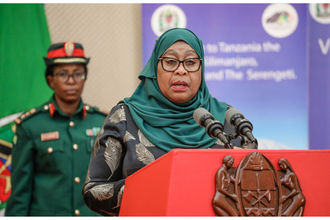 President Samia Suluhu Hassan speaks at State House in Dar es Salaam on October 10, 2022, during media briefing after holding a tete-a-tete with the newly elected Kenyan President William Ruto. PHOTO " STATE HOUSE