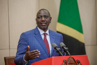 Kenyan President William Ruto speaks at State House in Dar es Salaam on October 10, 2022, during media briefing after holding a tete-a-tete with his host President Samia Suluhu Hassan. PHOTO | STATE HOUSE