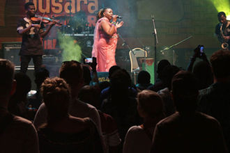 Singer Thais Diara from Mali serenades the audience at the opening night of the Sauti za Busara at the Old Fort in Zanzibar.