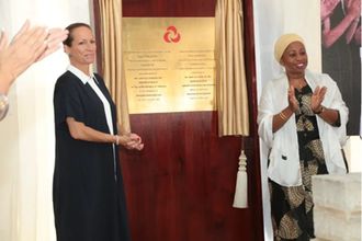 Health minister Ummy Mwalimu and the chairperson of the Aga Khan Health Services Board Executive Committee, Princess Zahra Aga Khan, lay the foundation stone for a cancer treatment centre at the Aga Khan Hospital, Dar es Salaam, yesterday. PHOTO | COURTESY