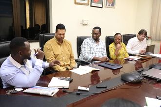 Bolt President Jevgeni Kabanov expresses himself during a meeting with MCL senior management. He was accompanied by the ride-hailing firm’s regional press officer for East Africa, Marion Wambua (second left), country manager Charles Matondane (left), and senior public policy manager for East and Southern Africa, Andrew Ihsaan (not in view). Third right is MCL’s managing director Bakari Machumu, corporate affairs and marketing manager Vivian Temi (second left), and executive editor Victor Mushi. PHOTO | SAID KHAMIS