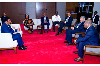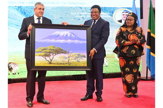 Prime minister Kassim Majaliwa with the Secretary General of the World Trade Organization Zurab Pololikashvili as they arrive to attend African tourism conference in Arusha, where Tourism ministers from across the continent and global stakeholders in the sector are in attendance. PHOTO | PMO