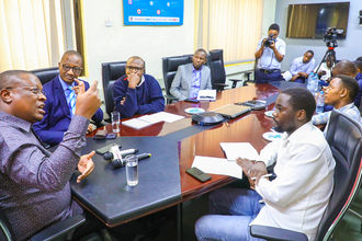 Information, Communication and IT minister Nape Nnauye (third left), Mwananchi Communications Limited (MCL) managing director Bakari Machumu (second left), chief government spokesperson Gerson Msigwa (second right) and MCL online content managing editor Zourha Malisa applaud during the launch of the new-look and user-friendly websites of The Citizen, Mwananchi and Mwanaspoti at the MCL newsroom in Dar es Salaam on February 15, 2022. Looking on is MCL corporate affairs and marketing manager Vivian Temi. PHOTO | EDWIN MJWAHUZI