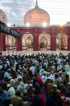 Muslim devotees pray before breaking their fast on the first day of the Islamic holy month of Ramadan, at the Mamon Mosque in Karachi on April 14, 2021.
