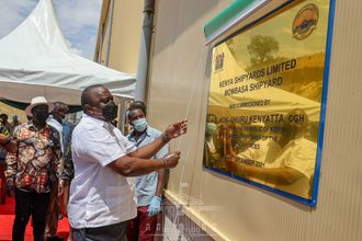 Kenya’s President Uhuru Kenyatta has commissioned the Kenya Shipyards Limited (KSL) Mombasa Shipyard at Mtongwe, a 4000-ton slipway for shipbuilding activities including refitting of vessels operated by Kenya Navy, Govt agencies and private operators. PHOTO | STATE HOUSE KENYA