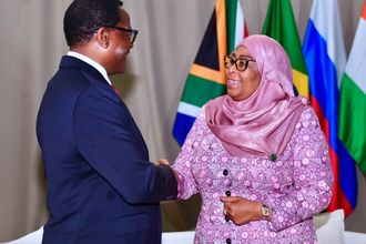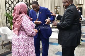 On the sidelines of the 2023 BRICS Summit in Johannesburg, President of Tanzania, Samia Suluhu Hassan, South African President Cyril Ramaphosa, and the President of Senegal, Macky Sall were seen sharing a light moment as global superpowers convened for discussions, with Africa now becoming a close ally.. PHOTO | STATE HOUSE