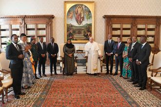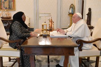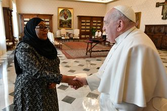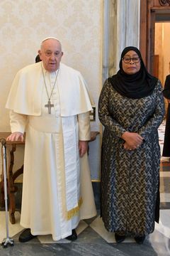 Pope Francis during a private audience with Tanzania's President Samia Suluhu Hassan in The Vatican.