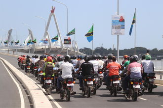 A group of motor cyclists on the Tanzanite Bridge earlier on Thursday March 24, 2022. PHOTO | SUNDAY GEORGE
