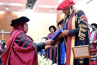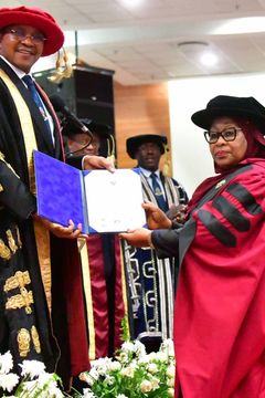 University of Dar es Salaam (UDSM) Chancellor and former President Jakaya Kikwete confers Honorary Doctorate Degree of Doctor of Letters (D.Litt) honoris causa) to presiding Tanzania’s President Samia Suluhu Hassan. President Samia has been recognized for her immerse positive impacts in the education sector and human rights.