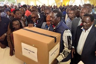 Raila Odinga and co-petitioner Martha Karua during the submission of their petition challenging the presidential election results at the Supreme Court on August 22, 2022. PHOTO | RICHARD MUNGUTI | NMG