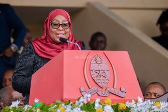 President Samia Suluhu Hassan delivers her speech during the 60th anniversary celebrations of the Union held at Uhuru Stadium in Dar es Salaam on April 26, 2024. PHOTO | STATE HOUSE