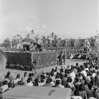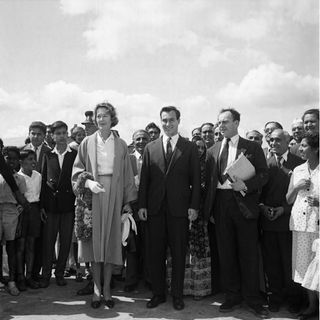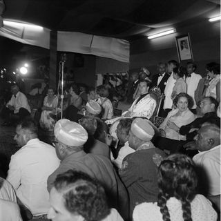 Prince Karim Aga Khan (C) flanked by his mother, Joan Yarde-Buller (R) and Ismaili Leaders, during the ceremony that enthroned him as forty-ninth Imam of Nizari Ismailis, following the death of his grandfather, the Aga Khan III, on July 11, 1957