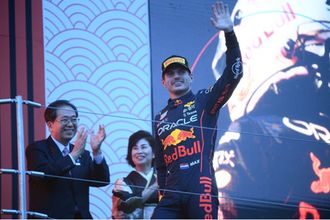Red Bull Racing's Dutch driver Max Verstappen celebrates after his victory at the Formula One Japanese Grand Prix at Suzuka, Mie prefecture on October 9, 2022.
