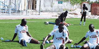 Azam FC new signing Didier Kavumbagu (left) warms up with his teammates Gaudence Mwasikimba (centre) and Aggrey Morris (right) during a training session at Chamazi Complex on Friday. photo | doris maliyaga