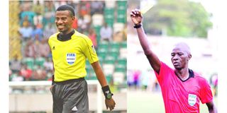 Combination photo of Nigerian referee Grema Mohamed (left), who has been appointed to officiate Simba vs. Nsingizini Hotspurs of Eswatini, and Benin referee Adissa Abdul Ligali, who will oversee the clash between Yanga and Malawian side Silver Strikers FC. PHOTO | FILE