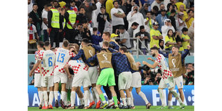 roatia players celebrate as they win the Qatar 2022 World Cup quarter-final football match between Croatia and Brazil at Education City Stadium in Al-Rayyan, west of Doha, on December 9, 2022.