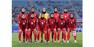 Iran players pose prior to the AFC Women’s Asian Cup Group A match between Iran and Philippines at Gold Coast Stadium on the Gold Coast, Australia. PHOTO | REUTERS
