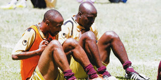 Taifa Stars midfielders Mwinyi Kazimoto (left) and Athumani Idd warm-up during a recent training session. photo | file