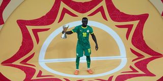 Senegal's Sadio Mane poses on stage with his player of the tournament trophy. PHOTO | REUTERS