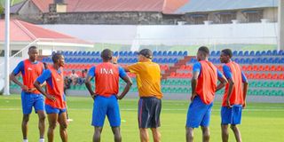 KMC head coach Marcio Maximo (third from right) gives instructions to his players during a training session ahead of their Premier League match. PHOTO/COURTESY