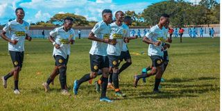 Mbeya City players train ahead of today’s Tanzania Mainland Premier League playoff against Championship League side Mashajuaa FC of Kigoma. The encounter has been scheduled to take place at the Sokoine Stadium in Mbeya Region, PHOTO | COURTESY