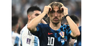 Croatia's midfielder #10 Luka Modric looks on after losing 3-0 to Argentina in the Qatar 2022 World Cup football semi-final match between Argentina and Croatia at Lusail Stadium in Lusail, north of Doha on December 13, 2022. PHOTO | AFP