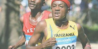 Samson Ramadhani of Tanzania leads Fred Mogaka Tumbo of Kenya during the Men’s Marathon at the Commonwealth Games at the Melbourne Cricket Ground on March 19, 2006 in Melbourne, Australia. Ramadhani won the gold medal and Tumbo took silver. PHOTO | FILE