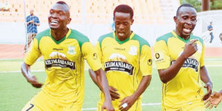 Deadly combination: Yanga players Didier Kavumbagu (left), Haruna Niyonzima (centre) and Hamis Kiiza celebrate during a past match. The trio are expected to lead the defending champions against Ashanti United at the National Stadium today. PHOTO | FILE