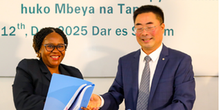 MCCL’s Board Chairperson Dr. Sophia Kongela (left) and Mr. Lin Zhong of Sinoma exchanging the executed EPC contracts copies.