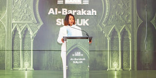 The CRDB Bank Director of Corporate Affairs and CRDB Bank Foundation Managing Director Ms Tully Esther Mwambapa, speaks at the launch of CRDB Al Barakah Sukuk, the first Sharia-compliant bond at a ceremony held at Johari Rotana Hotel in Dar es Salaam.