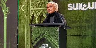 The CRDB Bank Board of Directors Chairperson, Prof Neema Mori speaks at the launch of CRDB Al Barakah Sukuk, the first Sharia-compliant bond, at Johari Rotana Hotel in Dar es Salaam.