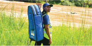The benefits ripple outward to communities through trained gauge readers like Hilary Daudi Kapenegele, a member of the Katuma Water Users Association.