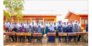 CRDB Bank's staff pose for a group photo with the administration and students of Mahutanga Secondary School located in Ifakara Town Council, Morogoro Region. This was after tables and chairs were donated to the school through the Bank's “Keti Jifunze” programme.