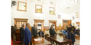 Magharibi A, District Commissioner, Ms Laila Burhan Ngozi takes the oath of office before Zanzibar President Dr Hussein Ali Mwinyi at State House, Zanzibar on Monday, April 13, 2026. PHOTO | JESSE MIKOFU